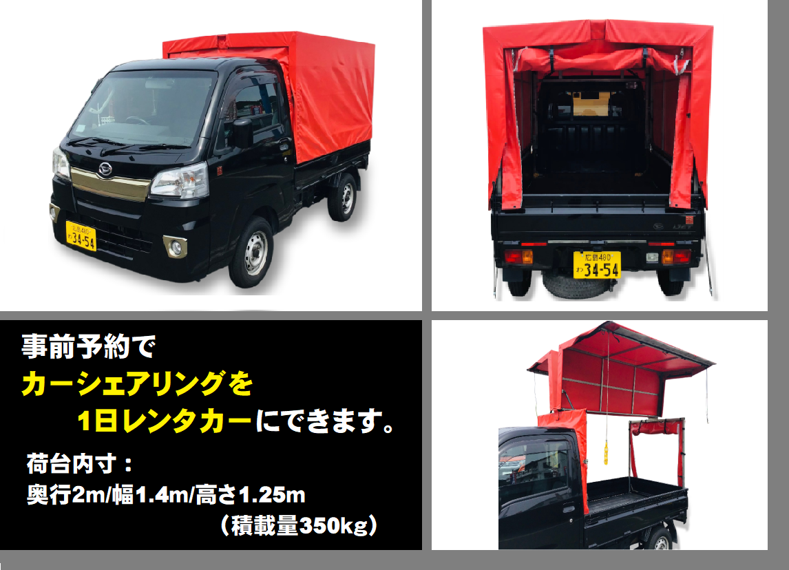 レンタル時間もリーズナブル。前日夕方6時から、最大、お使いの日の翌朝9時までの返却でも1日分の料金でOK。(前後の予約状況によります。必ずご相談ください)詳しくは、お気軽にご連絡くださいませ。